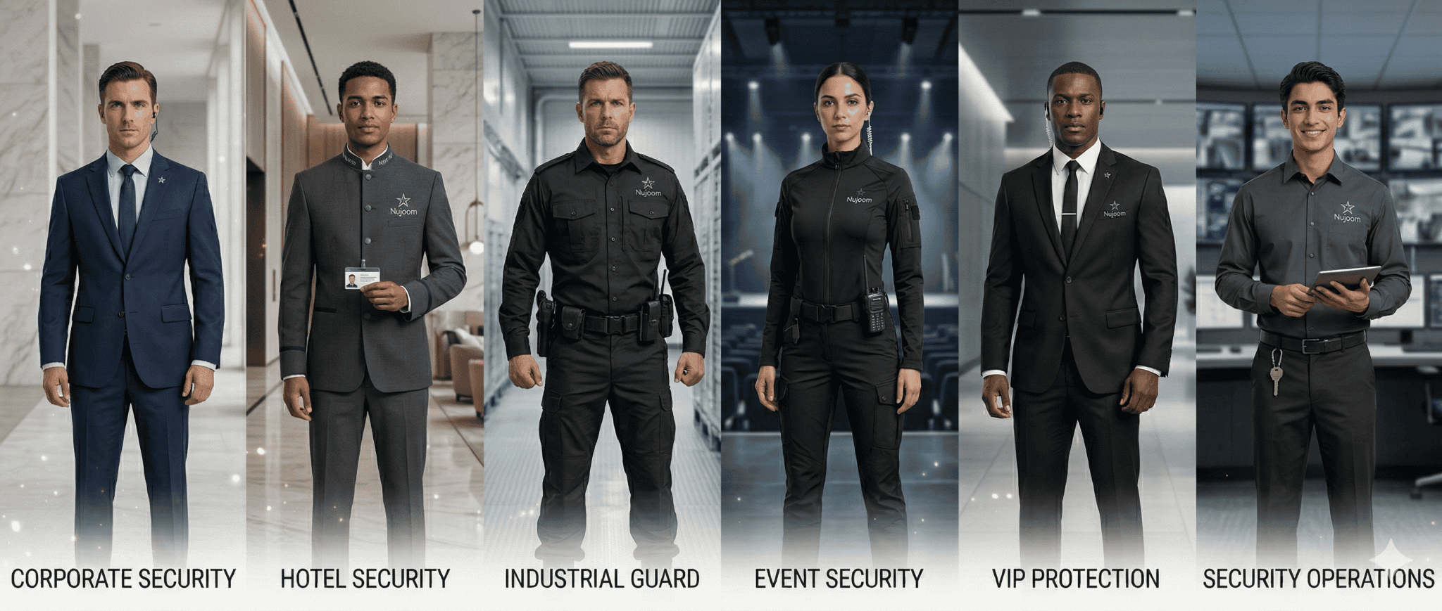 Uniforms for corporate security, industrial guards, event staff, and VIP protection